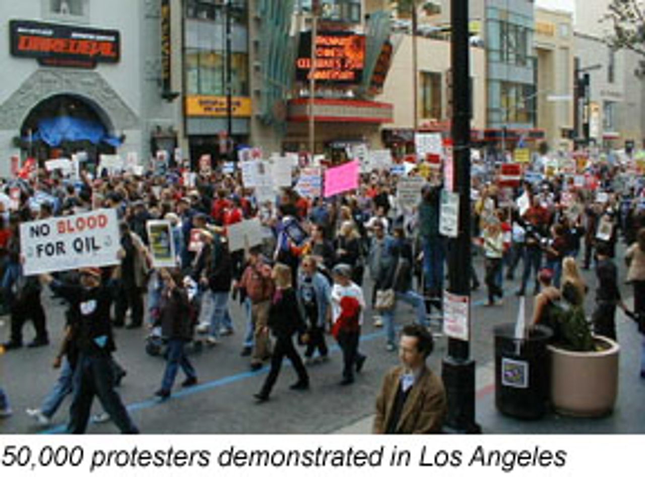 Leading the march were actors Martin Sheen, Anjelica Houston and Mike Farrell. At a rally concluding the march, Sheen and liberal author Gore Vidal addressed the crowd.