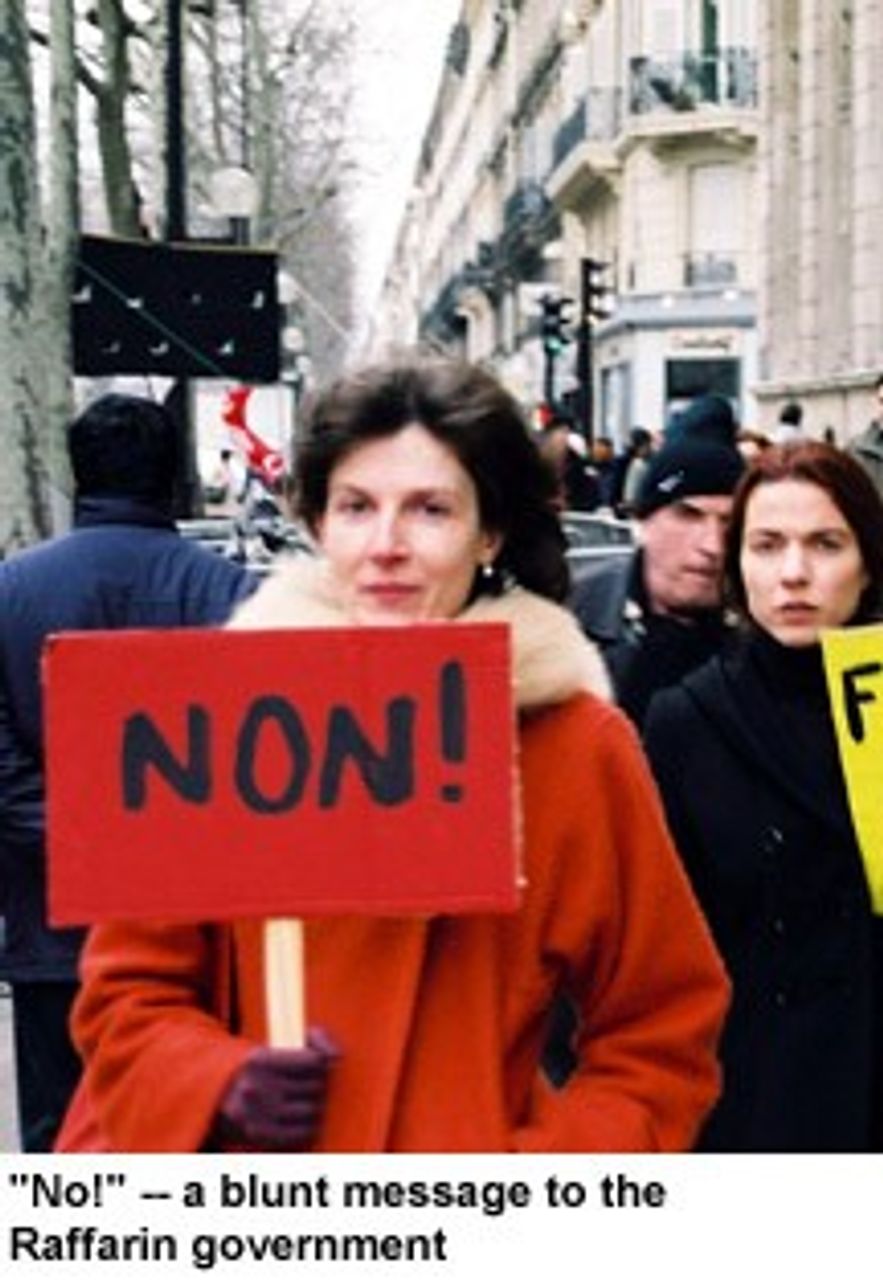 More than 500,000 people demonstrated on the streets of France against the ever-growing attacks of the government of Prime Minister Jean-Pierre Raffarin on Saturday, February 5. The government, backed by President Jacques Chirac, is pushing through legislation to extend working hours beyond the current 35-hour week, whilst allowing price rises that have grown with the introduction of the euro to eat away at workers’ standard of living.