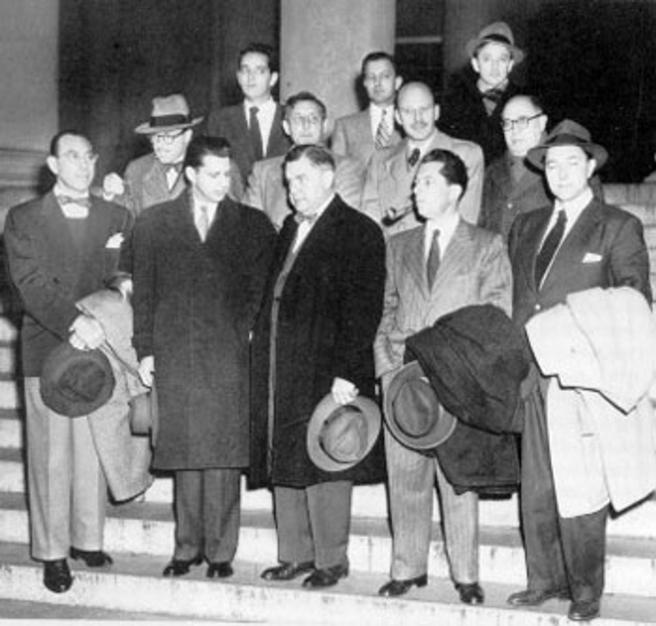 On November 25, 1947, the day after the Hollywood Ten were cited for contempt of Congress, for refusing to answer HUAC’s questions, leading studio executives and their lawyers met at the Waldorf-Astoria in New York and issued their statement launching the blacklist. They promised to discharge or suspend any of the Ten “until such time as he is acquitted or has purged himself of contempt and declares under oath that he is not a Communist” and, furthermore, the studio executives pledged not to “knowingly employ a Communist or a member of any party or group which advocates the overthrow of the government of the United States by force or by illegal or unconstitutional methods.”