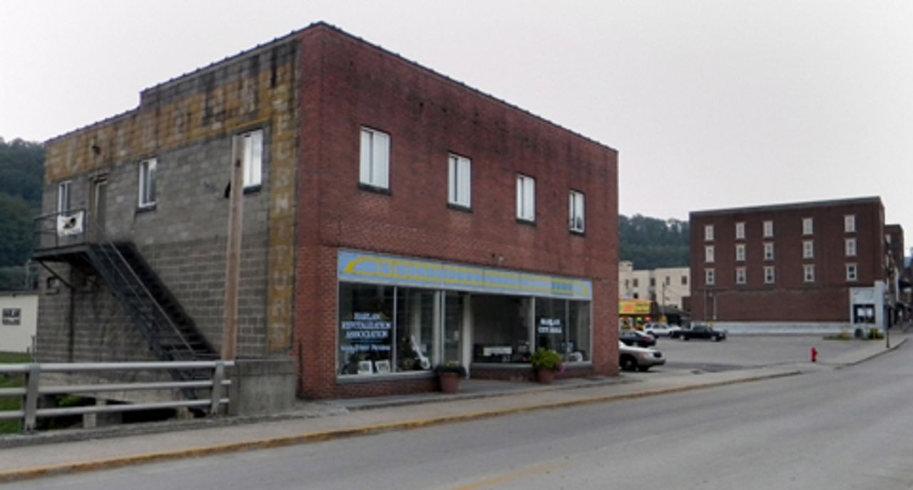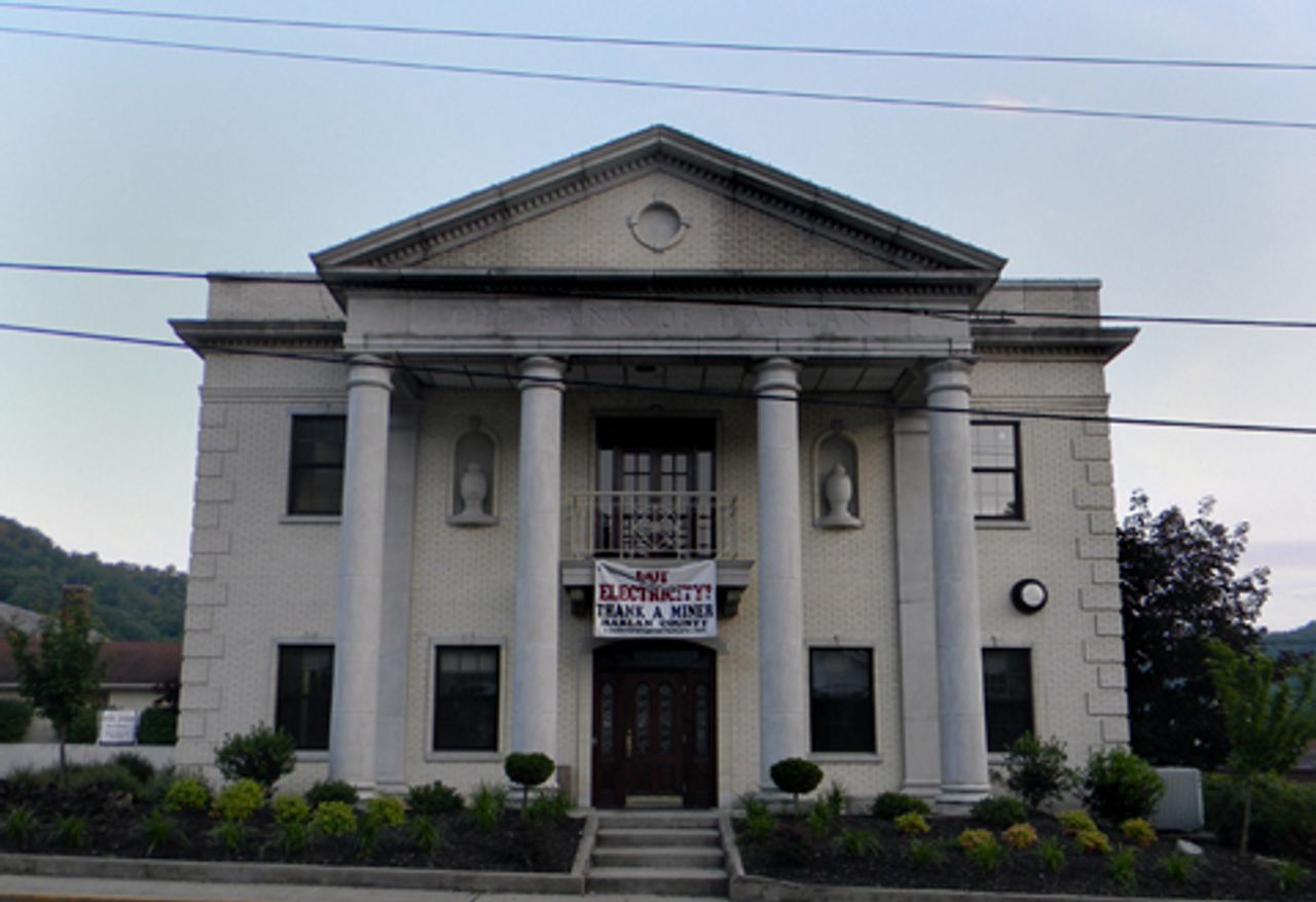 The Bank of Harlan, bearing a coal industry sign: “Got Electricity? Thank a Miner”