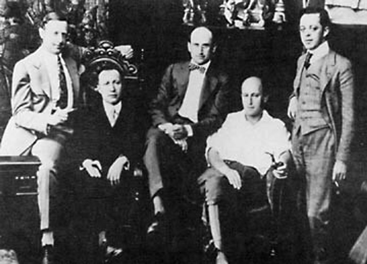 (L to R) Jesse L. Lasky, Adolph Zukor, Samuel Goldwyn, Cecil B.