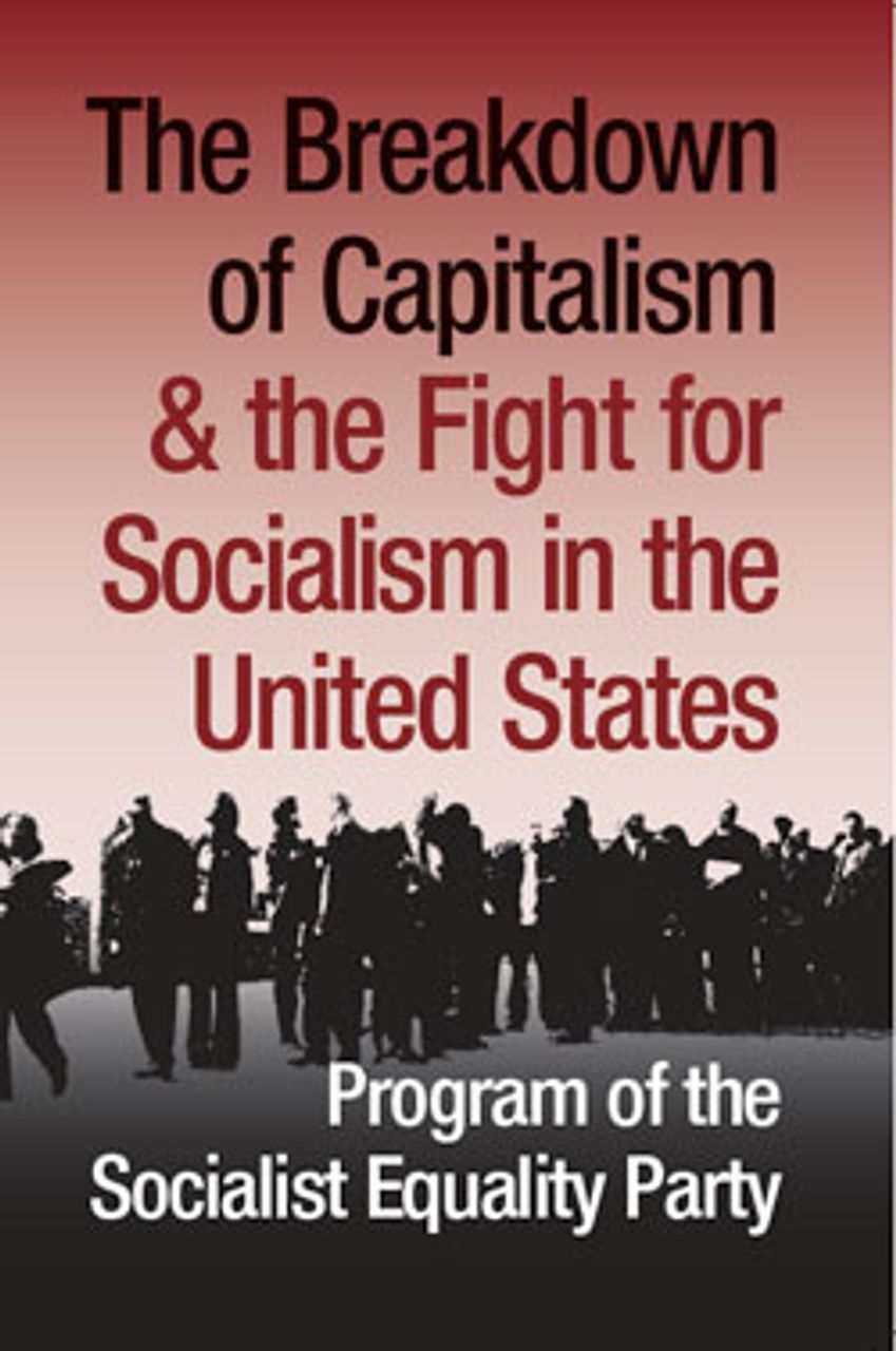 The Socialist Equality Party (US) today announces the publication of a printed version of its program, “The Breakdown of Capitalism and the Fight for Socialism in the United States,” adopted at its First National Congress in August. The 56-page booklet includes graphs and photographs documenting the crisis of capitalism, growing inequality, and the emerging struggles of the working class. The WSWS urges all readers to purchase your copy today.