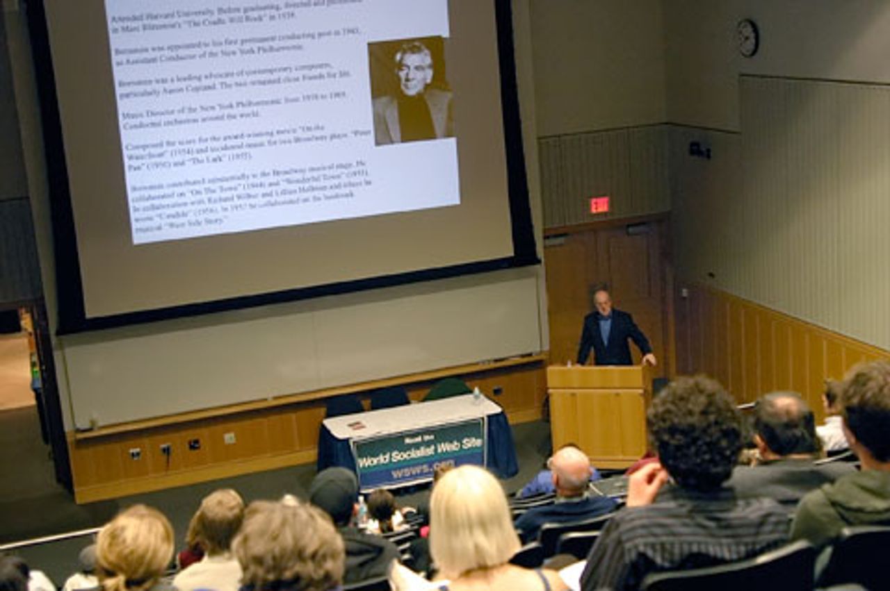 The meeting featured a talk by World Socialist Web Site arts editor David Walsh. Joseph Striplin, a violinist with the Detroit Symphony Orchestra, brought greetings to the event on behalf of the strikers. (See “DSO musicians hold spirited picket in week seven of strike”.)