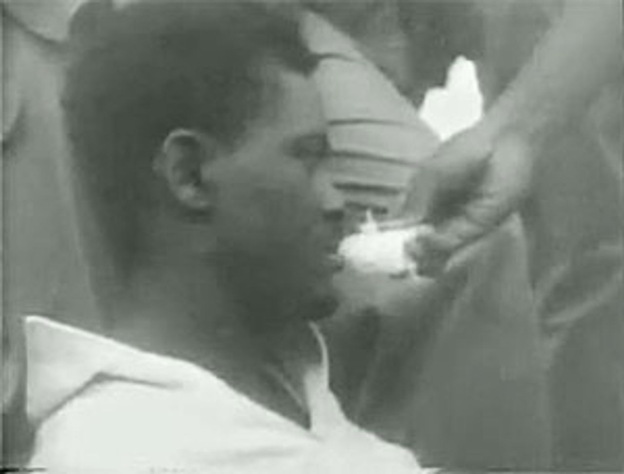 On November 27, Lumumba escaped from house arrest and attempted to flee to his political stronghold of Stanleyville. He was captured on December 1 by Mobutu’s forces. En route to his prison from Leopoldville airport, Lumumba was put on display in the back of a truck, hands tied and crowds were invited to taunt him. Bound in front of Mobutu, Lumumba was forced to eat a copy of a speech he had given asserting he was the rightful prime minister of the Congo.