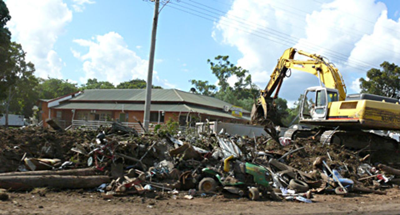 Marty Warburton, a local service station owner and former municipal councillor, escorted us into the town. While the clean-up has removed some of the huge quantities of debris, and the creek bed and the local railway bridge have been cleared to some extent, evidence of the catastrophe was everywhere.