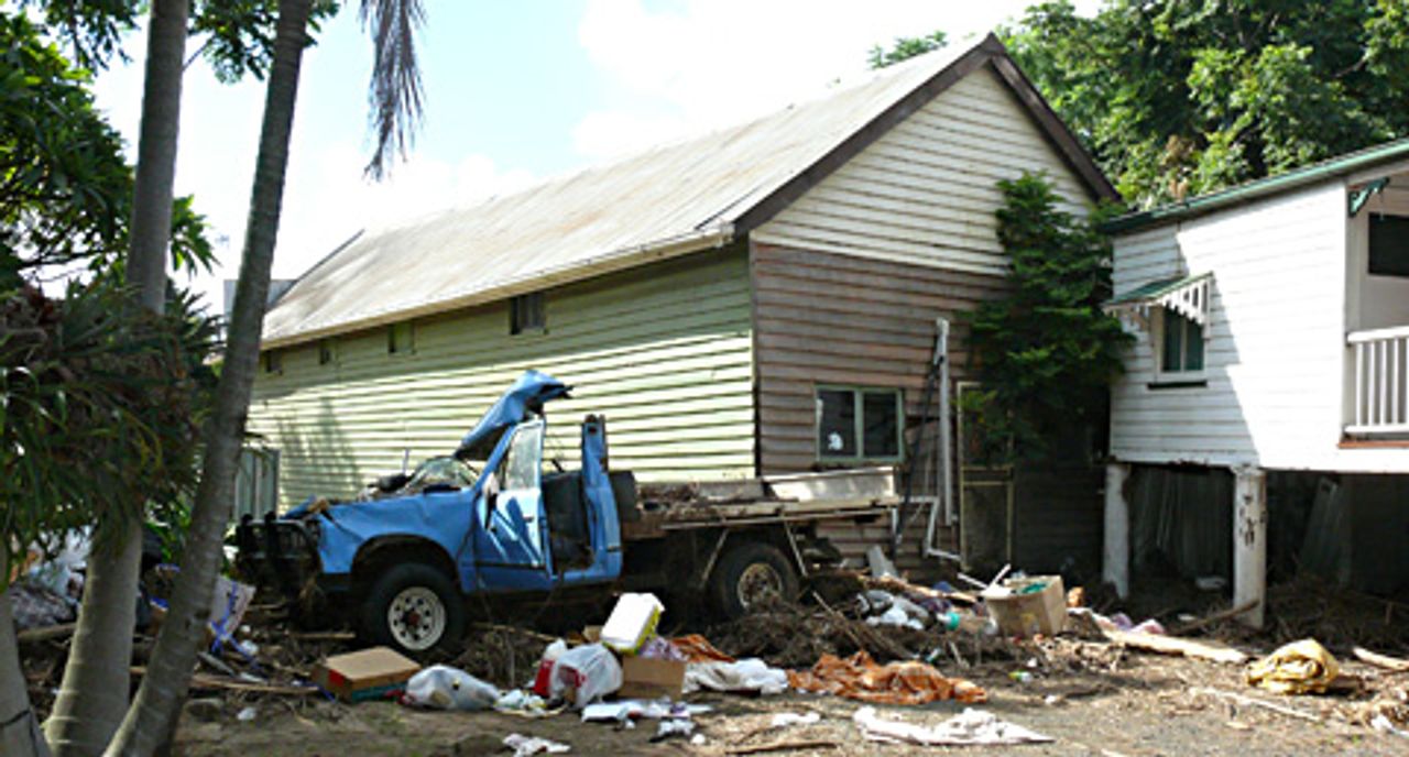 We drove past street after street of wrecked homes—some just piles of scattered wood, metal and glass, others crumpled ruins. Numbers were completely dislodged from bent foundation stumps. Many of the old-style “Queenslanders”—wooden homes built on stilts above the flood plain—were simply lifted off their foundations and washed away.