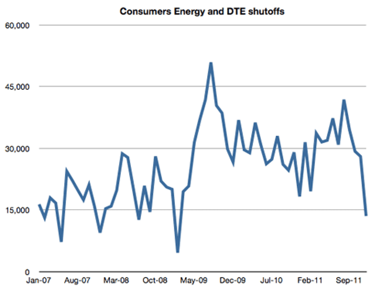 The shutoffs in 2011 by DTE were nearly two and a half times the level in 2007, before the onset of the economic crisis. That is, as more people are suffering from unemployment and poverty, the utility companies have moved ruthlessly to deny them the most basic necessitates.