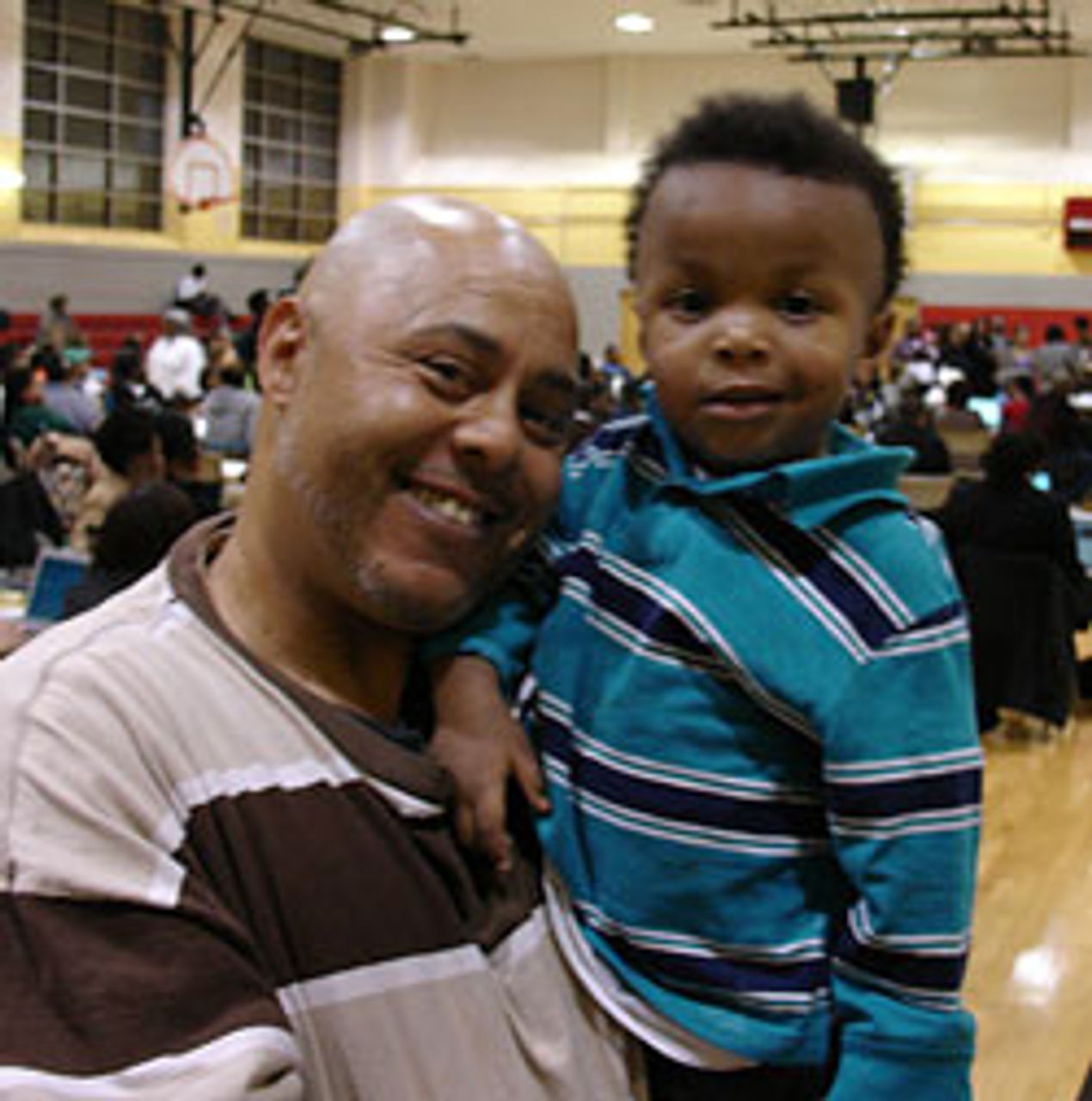 Inbrook Livingston holding his childInbrook Livingston, PTA president at Davis Elementary, pointed out the fraud in DCPS’s claim that closing schools would actually help children.