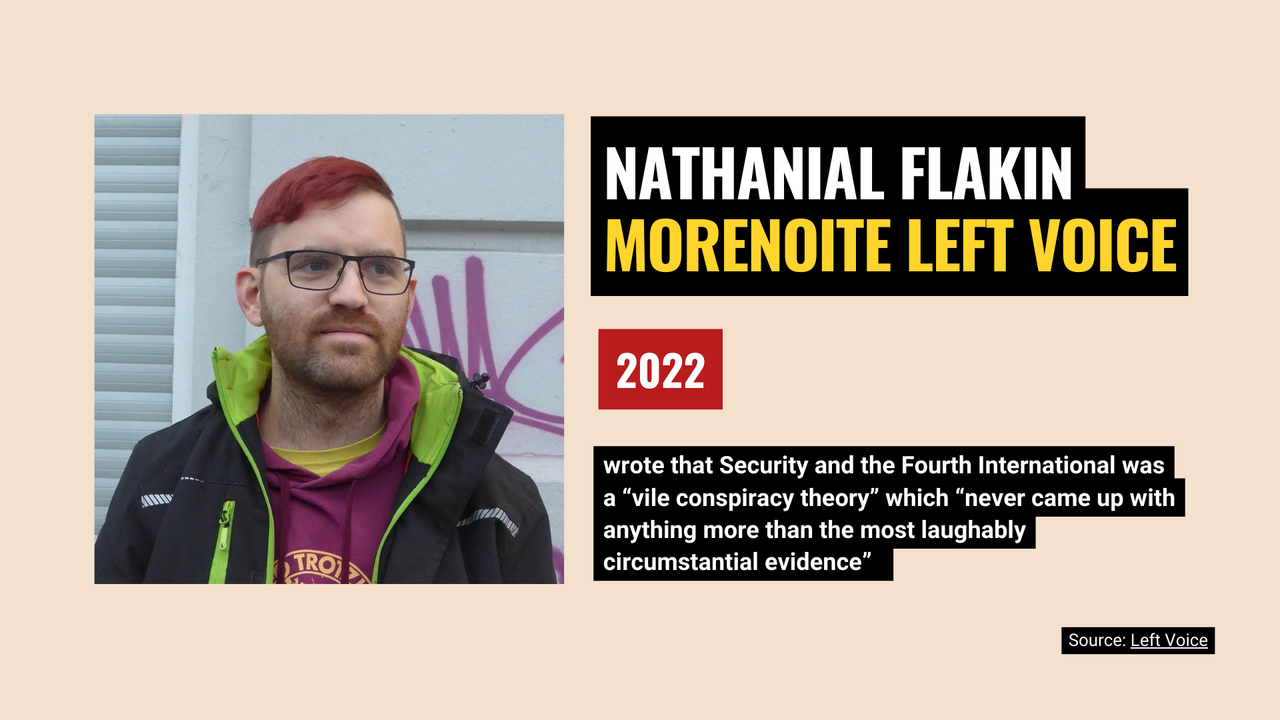 Nathanial Flakin of the Morenoite Left Voice wrote in a June 23, 2022 article that Security and the Fourth International was a “vile conspiracy theory” which “never came up with anything more than the most laughably circumstantial evidence.”