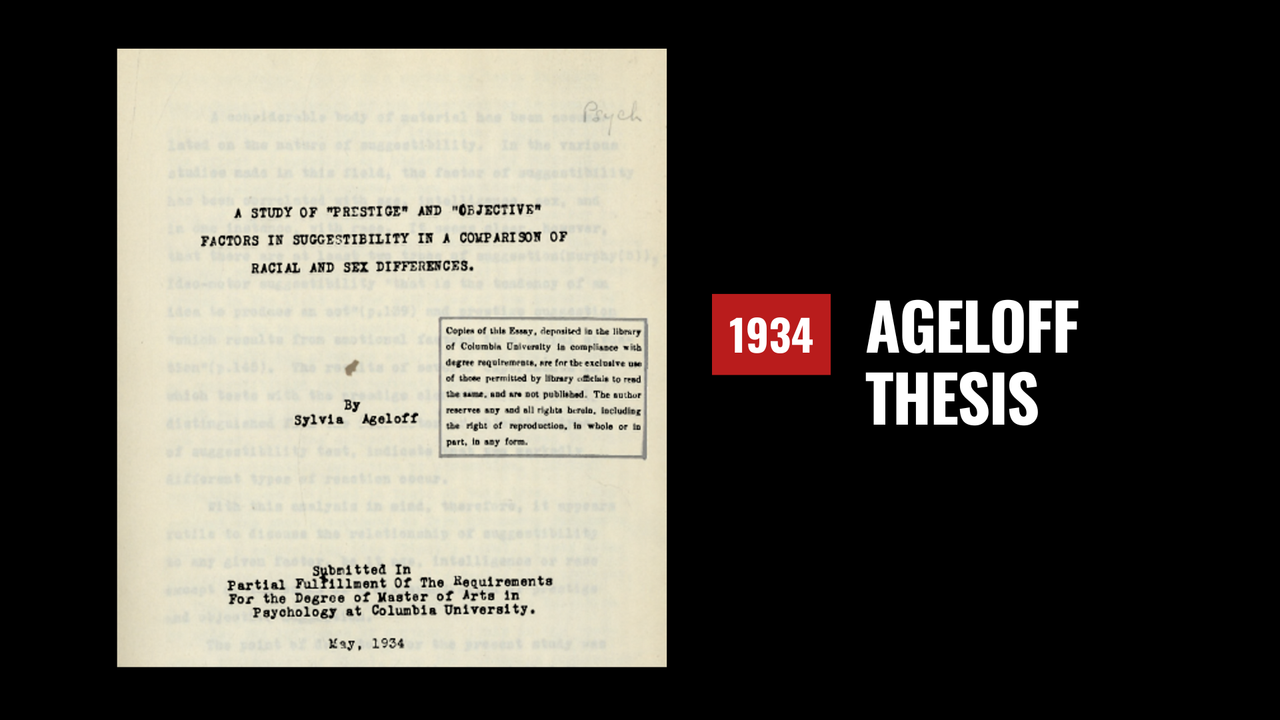 Sylvia Ageloff herself was not only from a family with radical and complex political ties, but she was highly educated—earning a master’s in psychology at Columbia University in 1934. Her scholarly work focused on “suggestibility,” with particular attention to how authority figures influence perception and behavior, a fact at odds with the notion that she herself could have been so easily deceived by Mercader. Her dissertation, “A Study of ‘Prestige’ and ‘Objective’ Factors in Suggestibility,” examined how children responded to figures they respected, and concluded that individuals often abandon common sense under such influence. Ageloff was, by all accounts, analytical, observant, and accustomed to critical evaluation—qualities that contradict the legend of her being a passive, gullible victim.