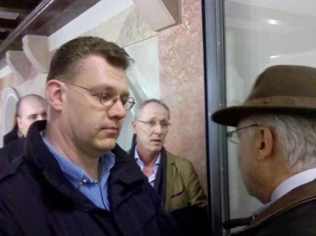 ජාත්යන්තරව ප්රකට ඉතිහාසඥයෙකු හා සර්විස්ගේ චරිතාපදානයෙහි ජර්මානු සංස්කරනය පලකිරීමට විරෝධය පලකරමින් සූර්කාම්ප් ප්රකාශන මන්දිරය වෙත යැවූ ලිපියට අත්සන් තැබූ එක් අයෙකු වන පෝට්ස්ඩෑම් විශ්වවිද්යාලයේ මහාචාර්ය මාරියෝ කෙස්ලර් ද රැස්වීම් ශාලාවට පිවිසීමෙන් වලක්වන ලදී.