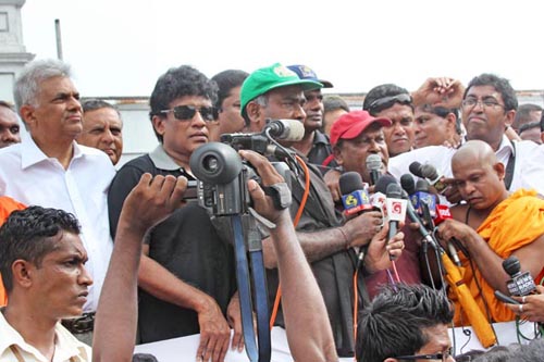 පසුගිය වසරේ අගෝස්තු මාසයේදී විරෝධතා දැක්වූ වැලිවේරිය ගම්වාසීන්ට හමුදාව වෙඩිතැබීමෙන් තරුනයින් තිදෙනෙක් මිය යාමට එරෙහිව එජාපය සංවිධානය කල පිකට් උද්ඝෝෂනය, එසප නායකයා විසින් මෙම සන්ධානය උත්කර්ෂයට නංවන්නේ කෙසේ ද යන්න පිලිබඳ එක් නිදසුනකි. වෙඩි තැබීම සිදු වූයේ ප්රදේශයේ භූගත ජලය දූෂනය කරන බවට චෝදනා කරමින් කම්හල වසා දමන ලෙස ගම්වාසීන් බලකර සිටියදී ය.