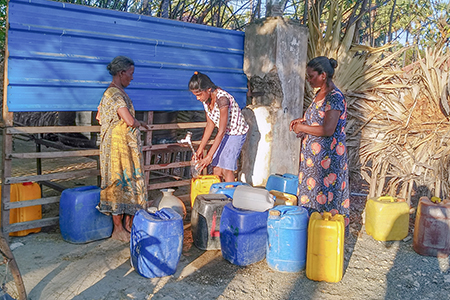 නෙයිදාල් ගම්මානයේ කේ. නලීනාකාන්ති: “අපිට වතුර හම්බ වෙන්නේ අඩුවෙන්. දැන් අපිට ලැබෙන්නෙ ලීටර 200ක් විතරයි. සමහර වෙලාවට අපේ ගමට එන බවුසරය ගෙවල් කිහිපයකට වතුර දීල වතුර ඉවරයි කියල කියනවා. බොහෝ පවුල් වතුරවලට පොරකනව. අපිට ලුනු වතුර නාන්න සිද්ද වෙලා.”