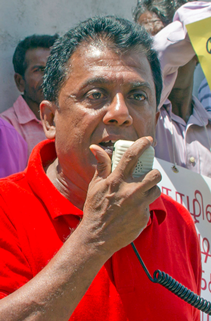 අවන්හල් කම්කරුවකු වන බාලසිංහම්: “රුපියල් 1,000ක දෛනික වැටුපකින් මම මගේ පවුල නඩත්තු කරගෙන යාමට වලිකනවා. ඒත් වතු කම්කරුවන්ට එච්චරක් වත් ලැබෙන්නෙ නැහැ. හැම තැන ම කම්කරුවන් මුහුන දෙන්නෙ එකම ප්රශ්නවලට. මම වතු කම්කරුවන්ගේ අරගලයට සහයෝගය දෙනවා, ඒකට සම්බන්ධ වෙලා ඔවුන්ගේ සටනට සහයෝගය දෙනවා.”