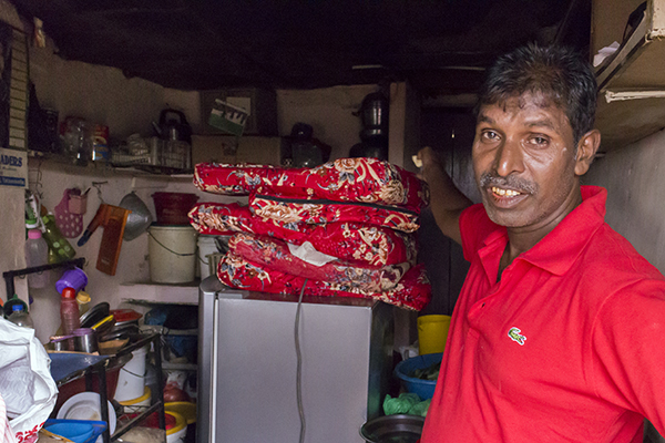 සෑම පවුලකට ම ඇත්තේ කුස්සියකින් හෝ සාලයකින් තොර කාමර දෙකක් පමනි. කම්කරුවෝ වෙන ම තාවකාලික කුස්සි හා වැසිකිලි තනා ගෙන ඇත්තේ ඔවුන්ගේ ම වියදමිනි.