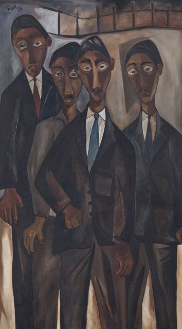 පැරීසියේ සිට ඉන්දියාවට ආපසු පැමිනීමෙන් පසුව නිර්මානය කරන ලද කුමාර්ගේ රැකියා විරහිත උපාධිධාරියෝ, පීඩාවෙන් දිරාගිය ඔවුන්ගේ දිගටි සිරුරු ඇඳුම් කට්ටලවලින් එල්ලා ගත්, අවතාරයන් බඳු තරුනයින් සිව් දෙනෙකුගේ තෙල් සායමකි. සිසුන්ගේ මුහුනු දිග සහ බදාම සහිත වන අතර, චිත්රයේ වැඩි කොටසක දී මෙන් අඳුරු දුඹුරු සහ අලු පැහැයෙන් යුතු ය. විශේෂ වන්නේ සිසුන්ගේ ඇස්ගෙඩි වන අතර, ඒවා ඔවුන්ගේ මුහුනු ඇතුලට ගිලී ගිය සුදු කලු අන්ඩාකාරයන් ලෙස අවෛෂයිකත්වයට පත්කොට තිබේ. රැකියා විරහිත උපාධිධාරියෝ, නිදහසින් පසු ඉන්දියාවේ සාමාන්ය මිනිසුන්ගේ ආර්ථික අරගල පිලිබඳ අවතාරයක් හොල්මන් කිරීමේ හැඟීම් දනවන භාවානුස්මරනයකි.