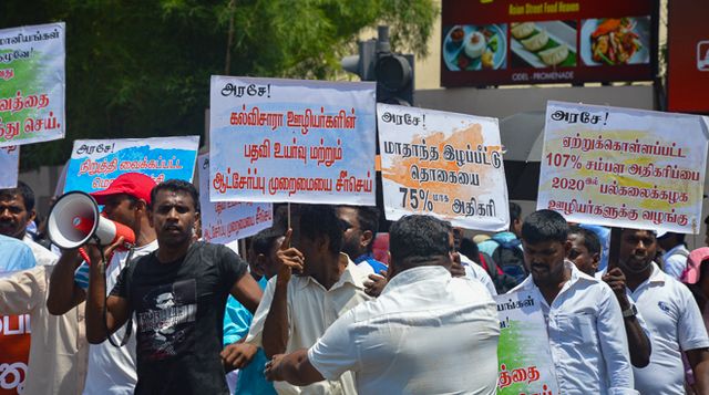 වැටුප් වැඩිකිරීමක්, නිසි විශ්රාම වැටුප් ක්රමයක් හා අනෙකුත් ප්රතිලාභ පිලිබඳ තම ඉල්ලීම් සඳහා බලකිරීම පිනිස, 5,000කට අධික විශ්ව විද්යාල කම්කරුවෝ හා විධායක නිලධාරියෝ විශ්ව විද්යාල ප්රතිපාදන කොමිෂන් සභාව (යූජීසී) අසල සැප්තැම්බර් 18 දා විරෝධතාවක් පැවැත්වූ හ.