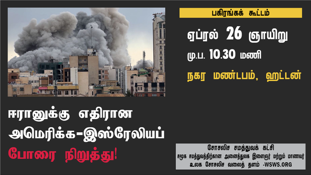 ஏப்ரல் 26 அன்று ஹட்டனில் நடைபெறும் இக்கூட்டத்தில், அமெரிக்க ஏகாதிபத்தியத்தின் உண்மையான நோக்கங்கள், விரிவடைந்து வரும் போரில் இலங்கை ஆளும் வர்க்கத்தின் உடந்தை மற்றும் போரை எதிர்த்துப் போராடுவதற்கு மேற்கொள்ளப்பட வேண்டிய சோசலிச மூலோபாயம் பற்றியும் கலந்துரையாடப்படும்.